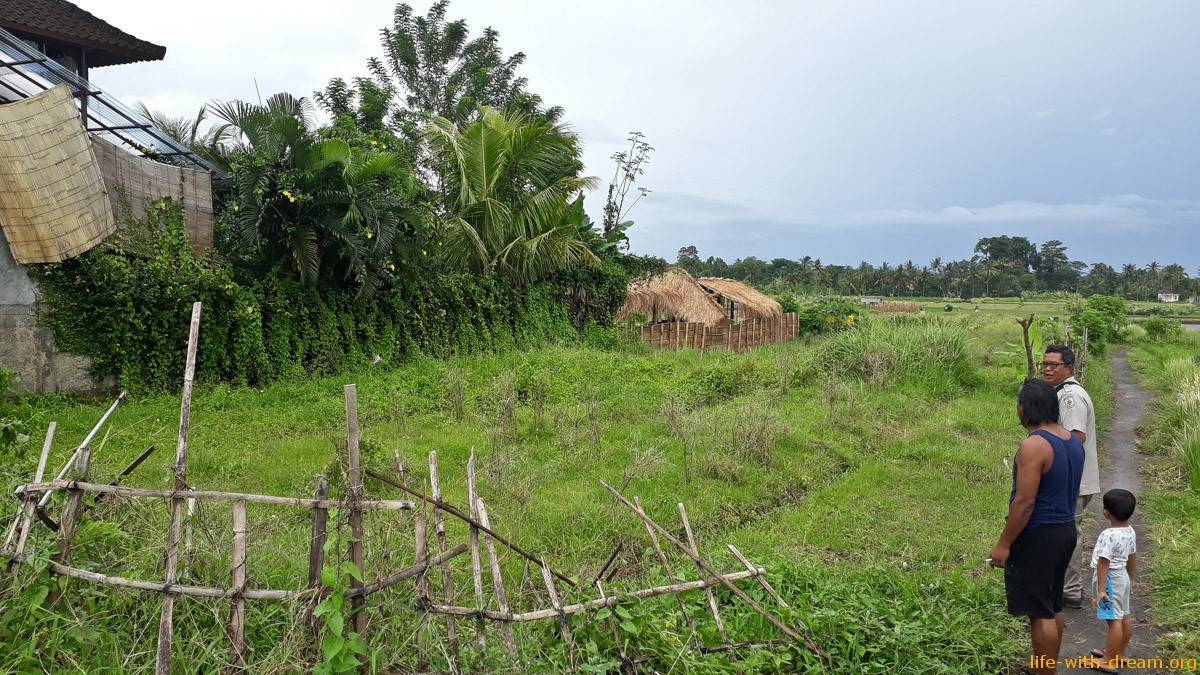 Наши местные балийские знакомые Иллу и Кетут решили нам помочь в поиске земли. На Бали не бывает случайностей, первая показанная ими земля нам сразу очень понравилась. Цена аренды 3,5 млн. рупий в год за сотку земли (≈USD 260), месторасположение в минуте ходьбы от нашего прежнего дома, в окружении рисовых полей. Кетут предупредил, что хозяин земли должен получить оригинал документа о праве собственности на землю, и это займет примерно месяц. Мы решили подождать.