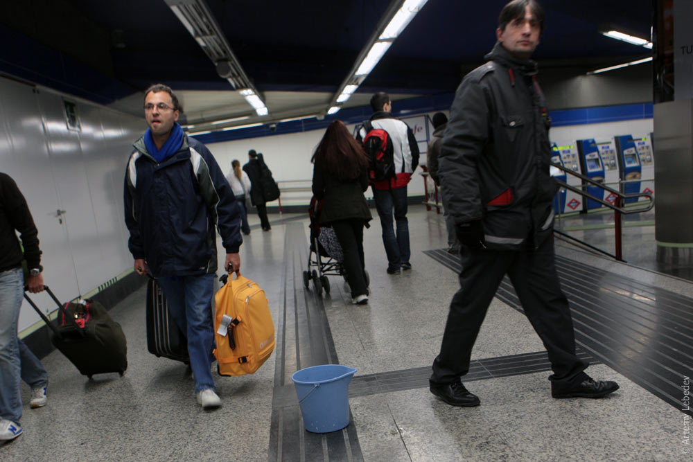 В метро посреди перехода стояло знакомое ведро, в которое сверху капала подземная вода.