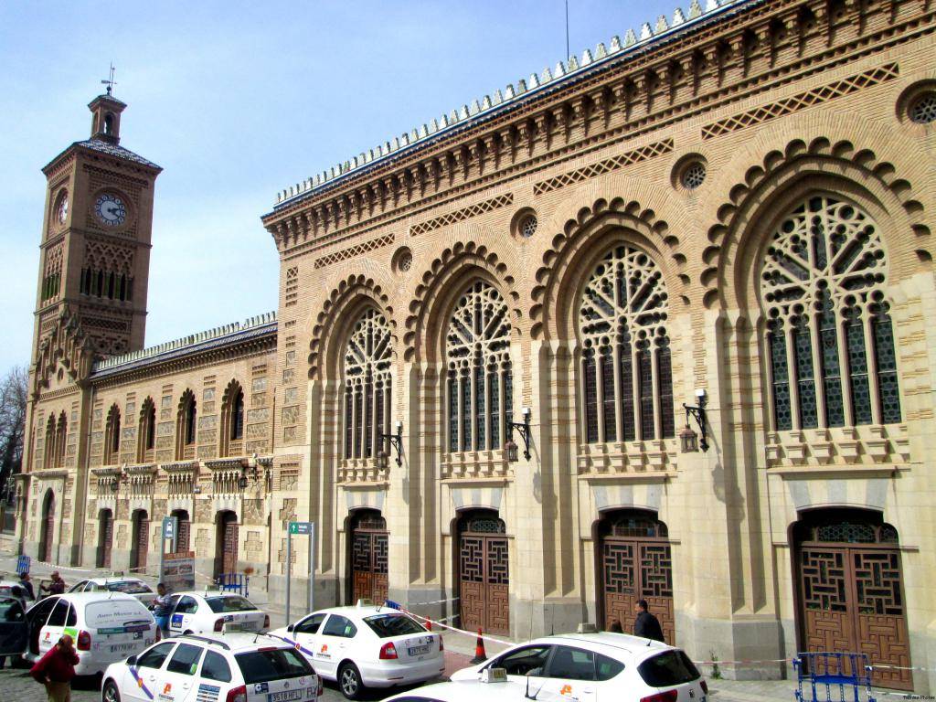 Поезда прибывают на вокзал, расположенный на противоположном от центра города берегу реки Тахо. Полтора километра до центра через мост Аракьель можно преодолеть пешком примерно за двадцать минут. Несмотря на то что дорога от вокзала займет больше времени, чем путь от автобусной станции, стоит хотя бы в одну сторону отправиться поездом и посетить красивейшее здание вокзала в Толедо.