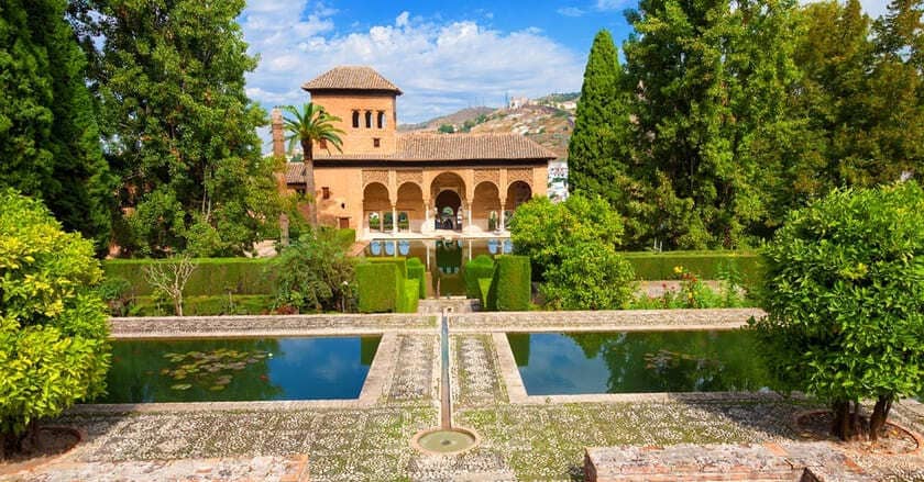 Естественно, первое, что бросается в глаза в Гранаде — это массивная Альгамбра на вершине холма аль-Сабика. Этот укрепленный дворец, охраняемый ЮНЕСКО, является ярким примером мавританского искусства и архитектуры. Альгамбра очень большая и искусно оформленная, поэтому на обход всего комплекса уходит не менее 4–5 часов.