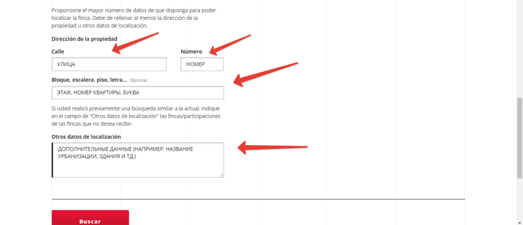 Нажимаем на опцию BUSCAR POR OTROS DATOS, выбираем провинцию, муниципалитет и номер регистра (учреждения), к которому относится Ваша недвижимость. Если с последним пунктом у Вас возник вопрос, нажмите на Si no conoce el Registro, utilice nuestro localizador. Всплывет новое окно, где нужно просто ввести адрес и програма сама найдет правильный вариант.