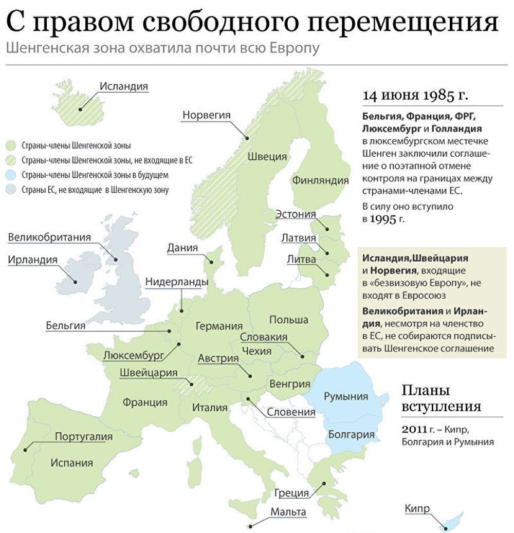 Шенгенская зона была полностью сформирована 19. 12. 2011 года, когда к списку государств с едиными таможенными правилами присоединилось княжество Лихтенштейн. В настоящее время в Шенгенское соглашение входят 26 стран, для посещения которых требуется единая виза. Наличие такого документа позволяет посетить все страны Европы за исключением Великобритании и Ирландии. Такие популярные для туристических поездок страны, как Болгария и Кипр, являющиеся членами Европейского союза, пока не приняты в Шенгенскую зону.