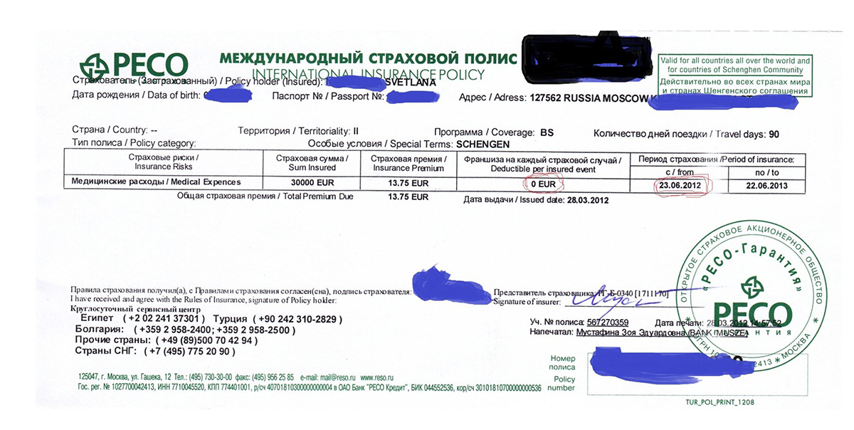 - Медстраховку (оригинал и копию), действующую на территории всех стран Шенгенского соглашения на время поездки. Сумма покрытия страховки должна составлять более 30 тысяч евро.
