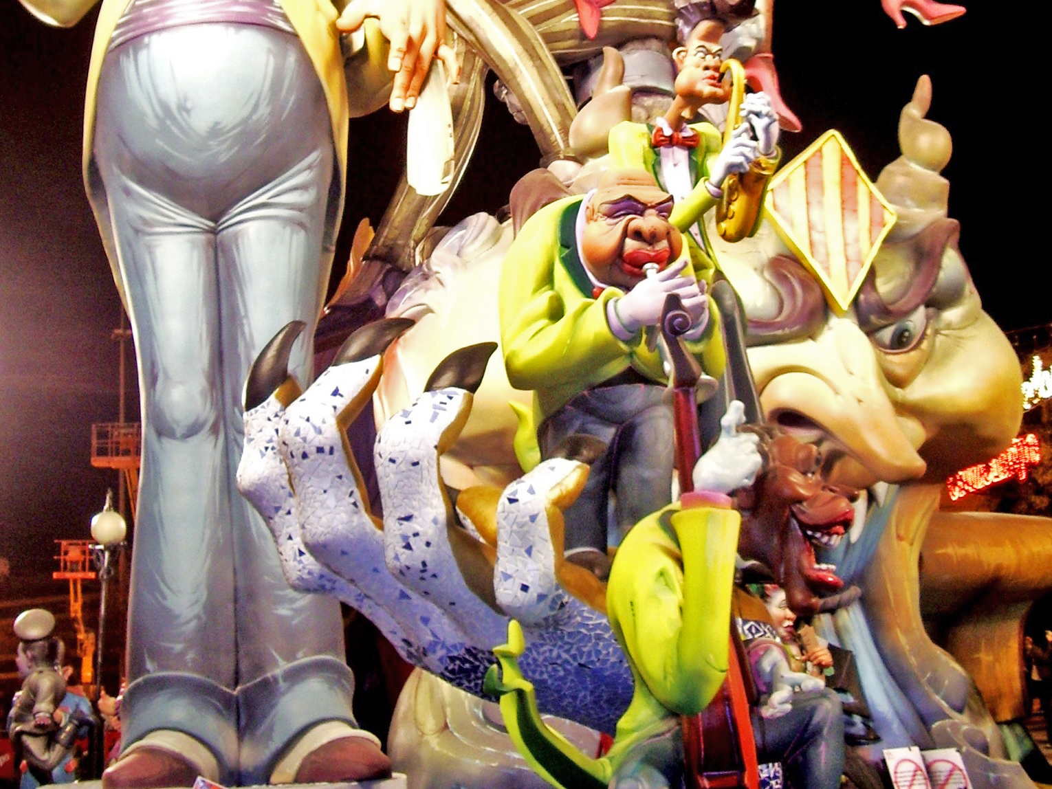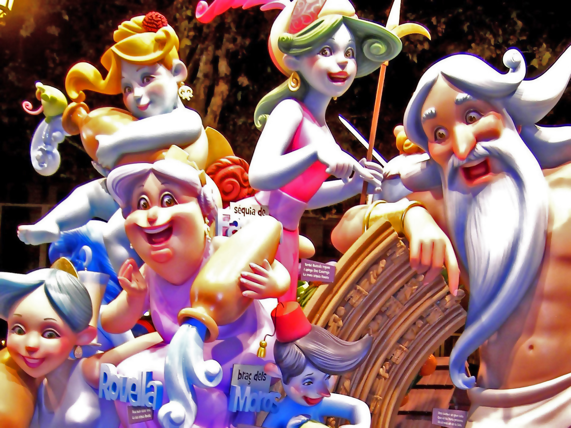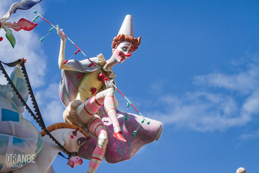 Мы прилетели в Валенсию 16 марта и фальи уже стояли везде, на каждом перекрестке и площади. Фальями называются скульптуры из папье-маше, что возводят к празднику. Они всегда стоят парами — большая композиция и рядом детская, поменьше. Как правило, обе фальи тождественны по тематике — это виртуозно исполненные карикатуры, злободневная сатира на общественно-важные темы. По всей Валенсии устанавливают более 700 скульптур, высмеивающих политиков и прочих селебрити. Все фигуры сжигают в ночь La Crema.