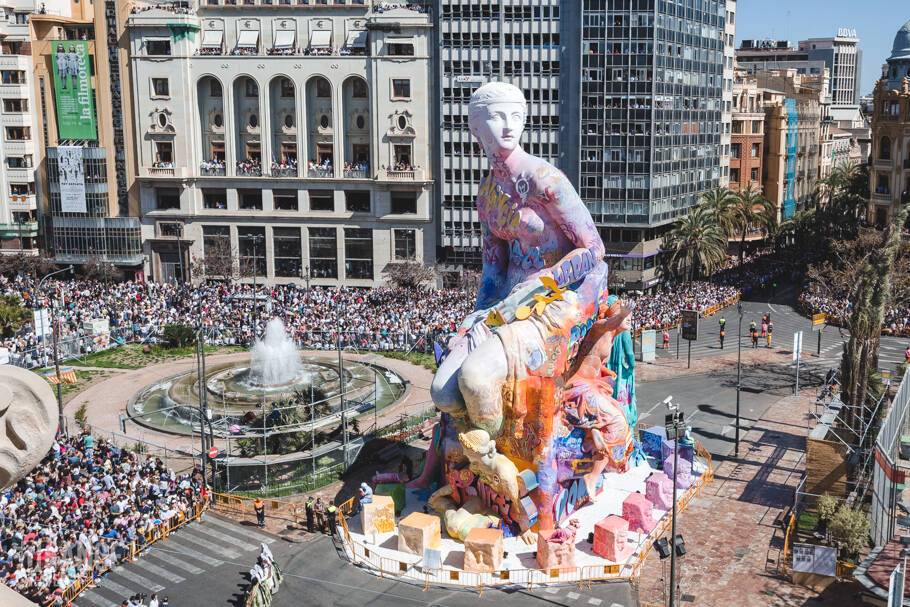 Первым делом нужно отправиться в самый центр города, гулять, петлять по переулкам и разглядывать фигуры. К некоторым фальям можно подойти поближе бесплатно, к самым эффектным и огромным, пускают за несколько евро, цена обычно от 2 до 5 евро. Самая главная фалья всегда стоит на площади Plaza del Ayuntamiento, для ее создания организационный комитет праздника всегда приглашает известных артистов. В 2019 году фигуру создал дуэт молодых художников из Валенсии Pichiavo, прославившийся своим граффити с неоклассикой. Ребята потратили год на этот проект, скульптуру высотой 24 метра назвали «Procés Creatiu».