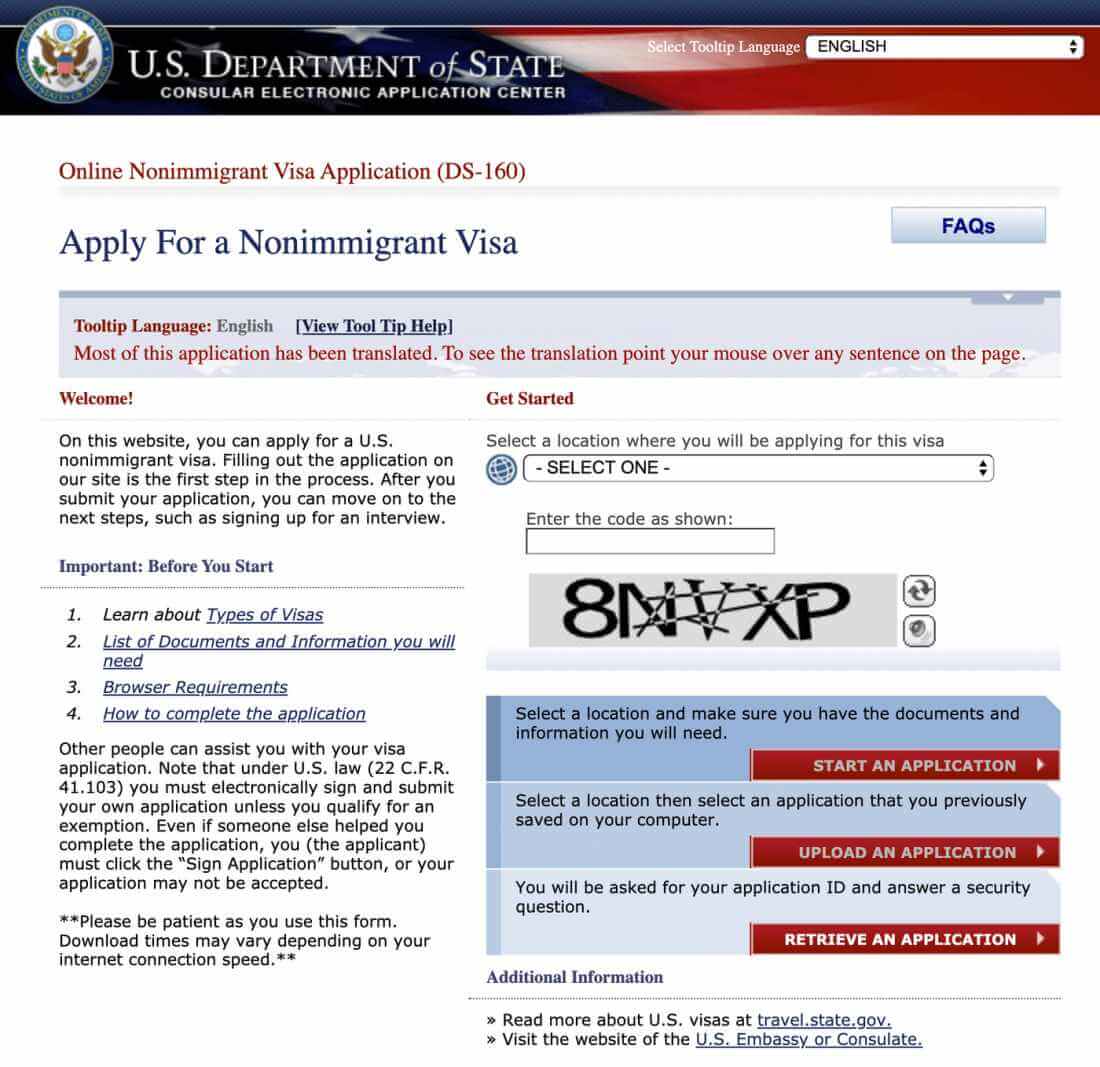 Онлайн заполнение визовой анкеты формы DS-160 на официальном сайте