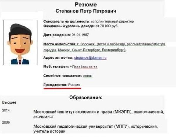 Сегодня национальность претендента на должность интересует работодателей в меньшей мере, чем гражданство