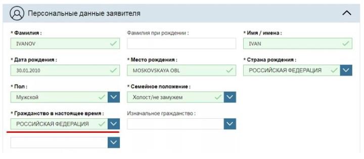 Предъявляются строгие требования к заполнению пункта о гражданстве. Оно пишется в Им. падеже, без сокращений: Российская Федерация, а не РФ. Краткое наименование допустимо, когда прямо предусмотрено бумагой (например, в подсказке стоит, что можно указать сокращенно).