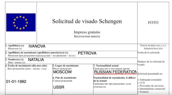 Некоторые страны принимают такой документ, заполненный онлайн на официальном сайте посольства (консульства). Наименование гражданства на английском пишется как Russian Federation.