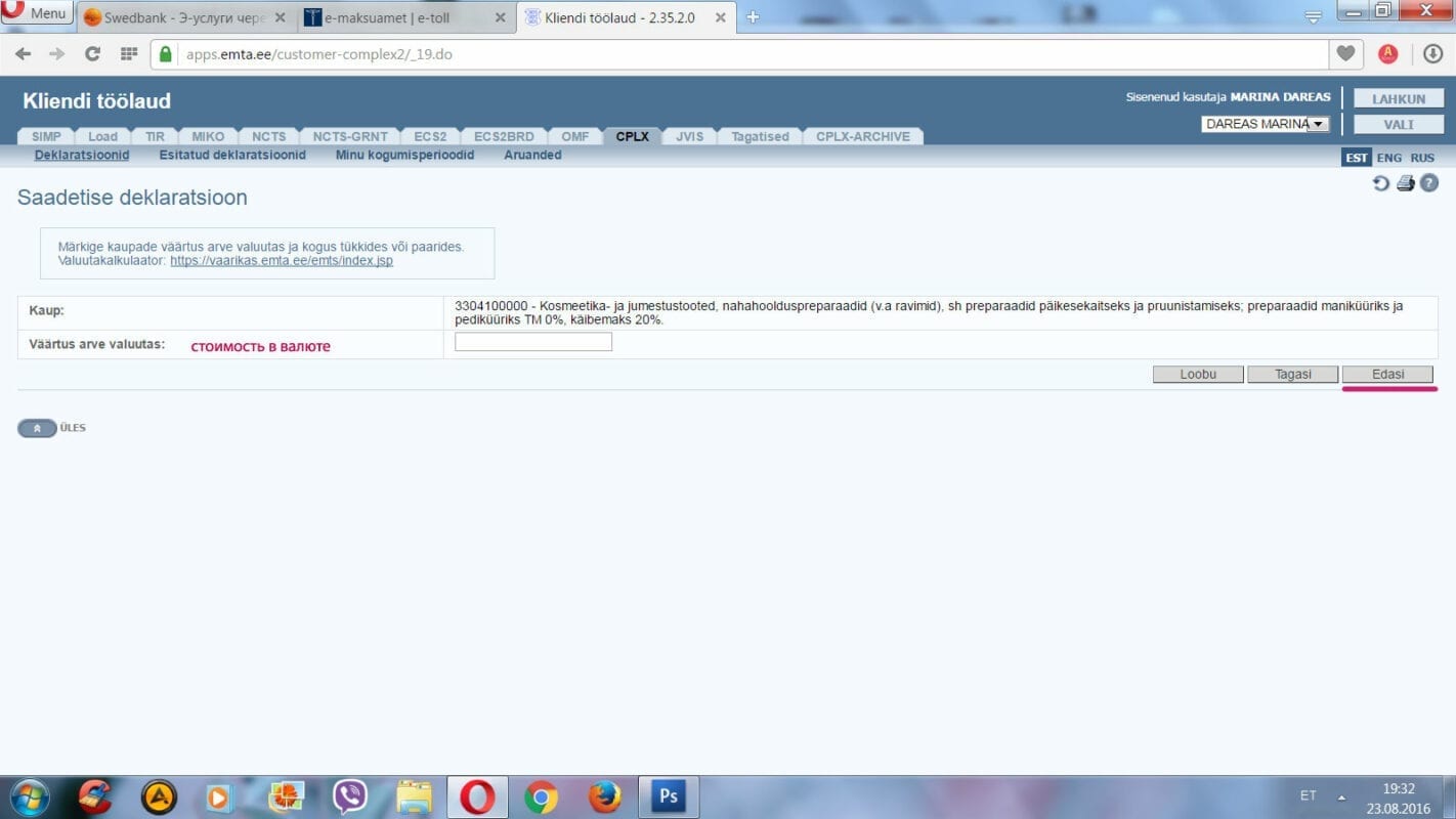 Выскакивает очередной экран, тут нужно вписать стоимость в валюте нашей. Пишим и жмякаем Edasi.