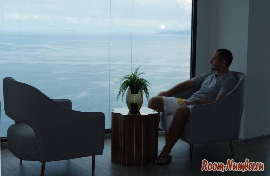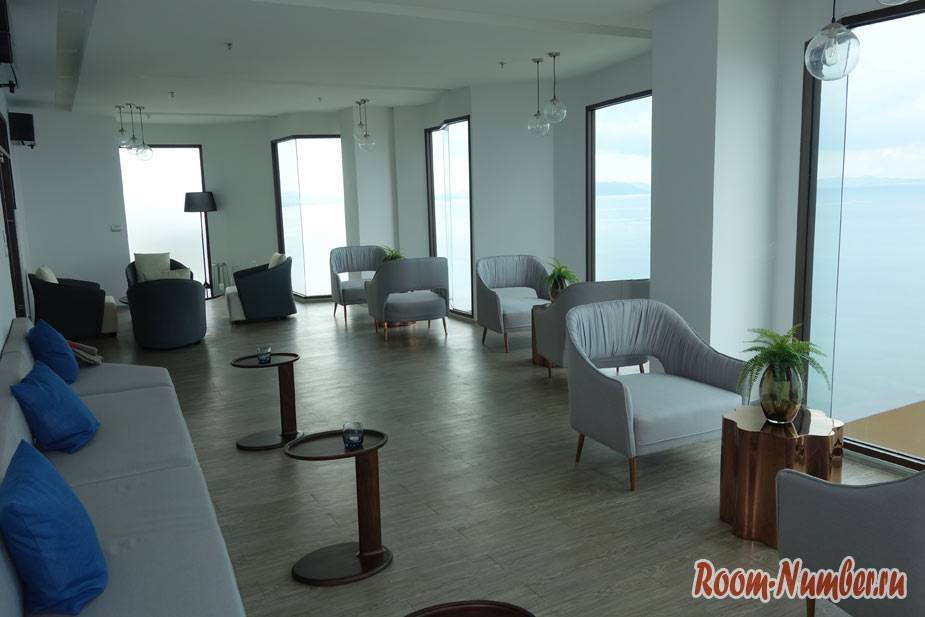 И это еще не все, чем смог порадовать Aeras condominium. Огромный зал с мягким диваном и креслами, откуда открывается умопомрачительный обзор на пляж Джомтьен.