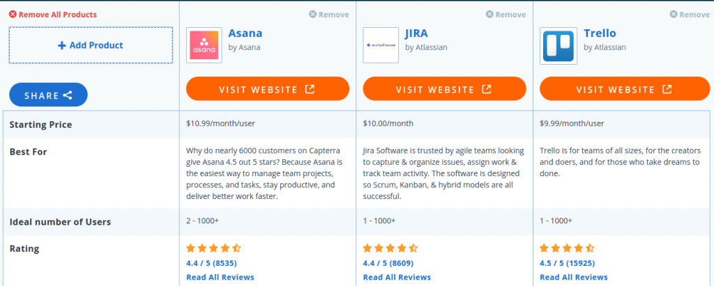 Для постановки задач и контроля их выполнения понадобится таск-менеджер (Trello, Asana, Jira). А для эффективной работы с клиентами необходима CRM система (CRM — Customer Relationship Management или Управление отношениями с клиентами). Часто менеджеры задач и CRM системы идут в одном комплекте (Zoho, Bitrix, та же Asana). Каждый менеджер задач хорош по своему и подходит под разные типы проектов. Например, Jira часто используется в IT индустрии, так как это удобный инструмент для отслеживания этапов разработки. Trello часто выбирают небольшие компании, так как этот менеджер задач доступен бесплатно и при этом им очень просто и удобно пользоваться. Протестируйте несколько вариантов и выберите тот, который подойдет вам.