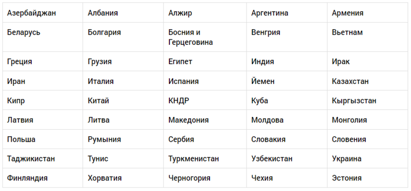Россия заключила договор о взаимном признании документов с 45 странами. Вот их список: