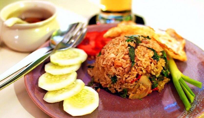 - Кхау Пхат (ข้าวผัด) – жареный рис с яйцом и овощами. Обычно добавляют кусочки курицы, свинины, говядины или морепродуктов.