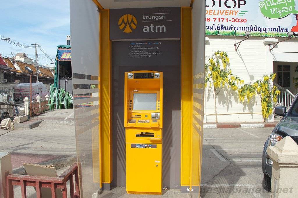 Опытные туристы советуют пользоваться банкоматами голубого или жёлтого цвета. Цвет в данном случае обозначает принадлежность банкомата к тому или иному банку. Также получить деньги с карты можно в банках Bangkok Bank или Krungsri.