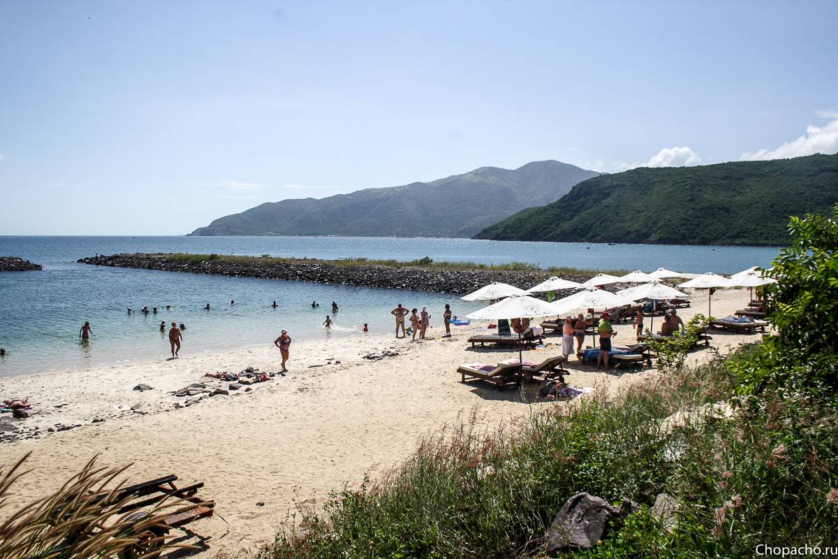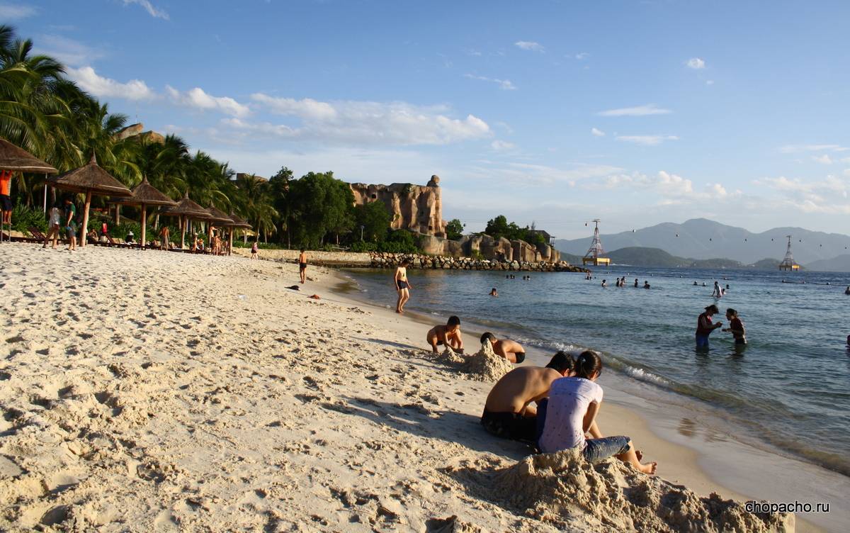 За две недели, проведенные у берегов Южно-Китайского моря, местный пляж посетили несколько раз. Грязный, жесткий песок, отсутствие шезлонгов не убили желание загорать. Но огромные волны, холодная морская вода сделали пляжный отдых дискомфортным. По совету местных жителей купаться ездили на остров развлечений «Venpearl» и Камрань. Море там тихое, чистое, теплое.