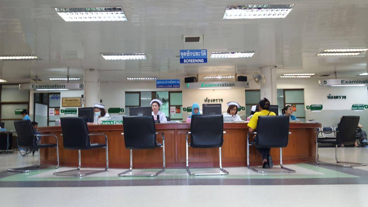 1. Для начала едем в любой госпиталь. Справка, которую нам нужно получить, называется Medical Certificate for driver license. Обычно во всех госпиталях есть электронная очередь, где вам нужно взять талон и ждать, когда на табло загорится ваш номер, затем подойти на ресепшен. Например на Пхукете в Pathong Hospital ресепшен выглядит вот так: