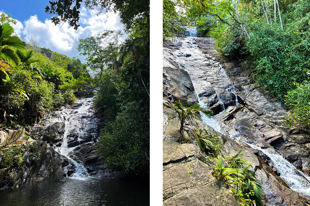 Водопад Sauzier в Port Glaud. Самый крупный и живописный из водопадов на Маэ. Его высота — 200 метров. У подножья можно искупаться, правда, температура воды из высокогорных источников заметно ниже, чем в океане.
