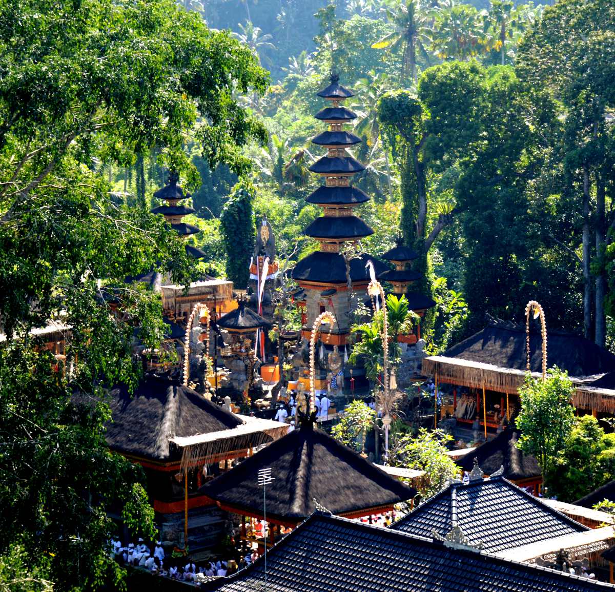 Во время праздников в храме не протолкнуться, все верующие стараются помолиться в святом месте и получить благословение небес. Балийцы приезжают в храм большими семьями, включая стариков и младенцев. На территории центрального двора расположены небольшие павильоны или пагоды, посвященные отдельным божествам.