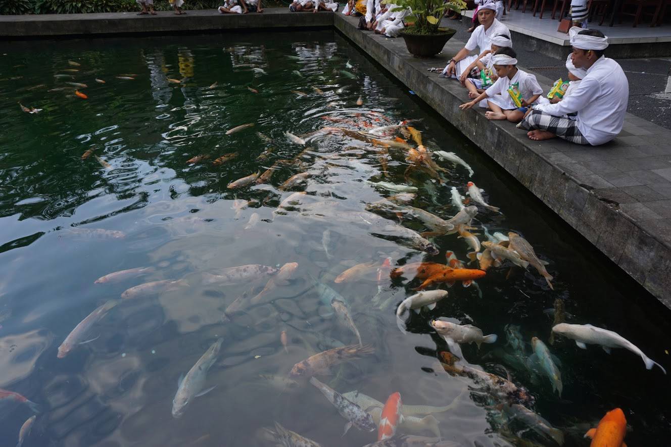 - Интересующиеся индуизмом в Тирта Эмпул познакомятся с обрядами приношения даров 20 богам, алтари которых расположены в небольших павильонах. Балийцы молятся и просят об исполнении желаний, зажигая благовония и оставляя символические подарки нужному божеству.