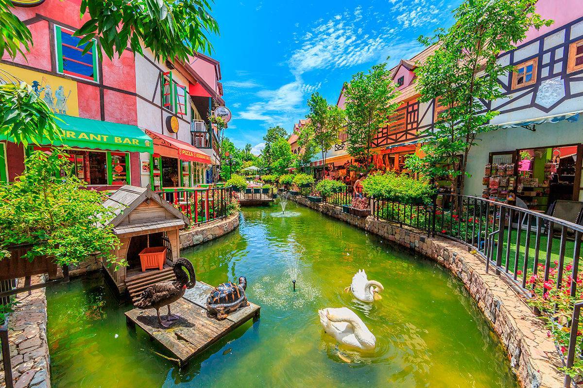 Это место ещё называют Городом любви, и оно представляет собой стилизованную копию французского небольшого города Кольмар в эпоху Возрождения. На одной территории собраны аттракционы, торговые точки и кафе. Но цены на сувенирную и прочую продукцию здесь очень высокие. Зато фуд-корт предлагает на выбор огромное количество блюд, от изысканных яств мировых кухонь до вкусного фаст-фуда.