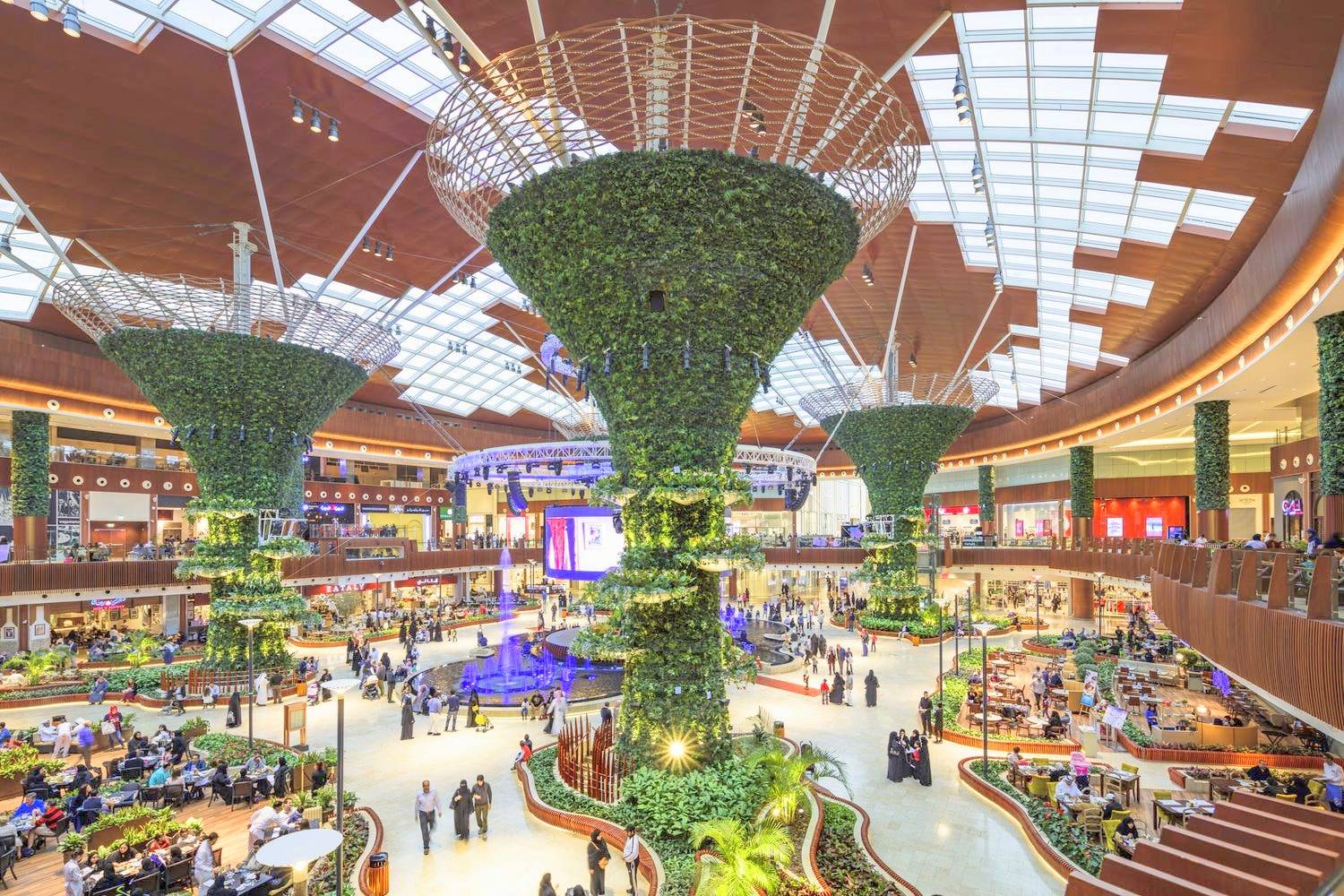 Пять этажей центрального сектора мола завершаются стеклянным куполом-крышей. В стороны уходят два крыла с магазинами и другими услугами. Есть фуд-корт. Из фастфуд-ресторанов есть Бургер Кинг и МакДональдс. Цена за 1 блюдо — от 10 риалов (180 руб.). Один из основных торговых центров с незавышенными ценами. Можно найти практически все. От аэропорта на рейсовом автобусе поездка займет около 30 минут.