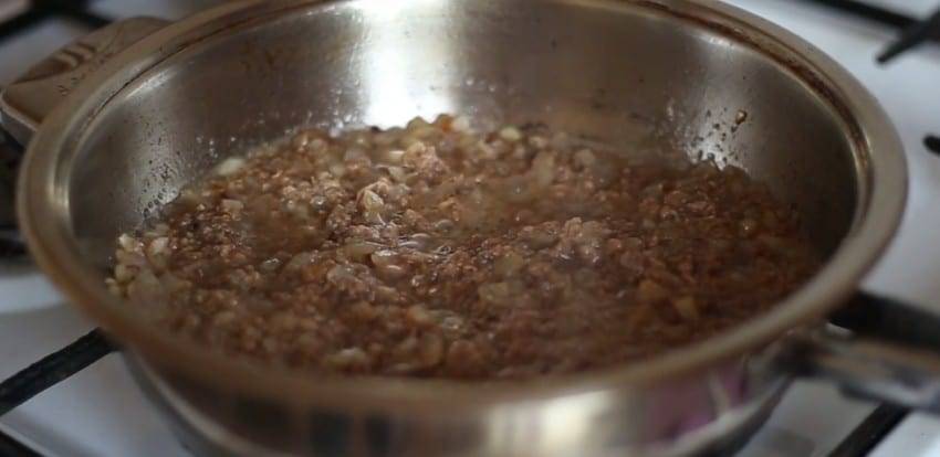 3. На сковороде разогрейте растительное масло и обжарьте лук, до золотистости.