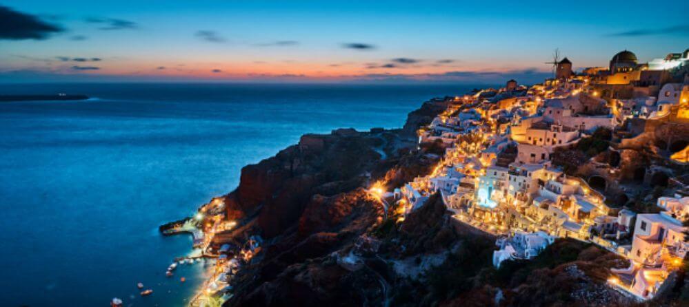 - Остров Санторини — особенный. Когда-то это был действующий вулкан, но после извержения со временем «оброс» белокаменными городками и превратился в красивейшее туристическое место. Огромное количество пляжей, особенность которым придают черные вулканические пески и горячие источники. В городе Иа находится лучшая смотровая площадка для наблюдения заката, это поистине захватывающее зрелище. Сезон – май-август.