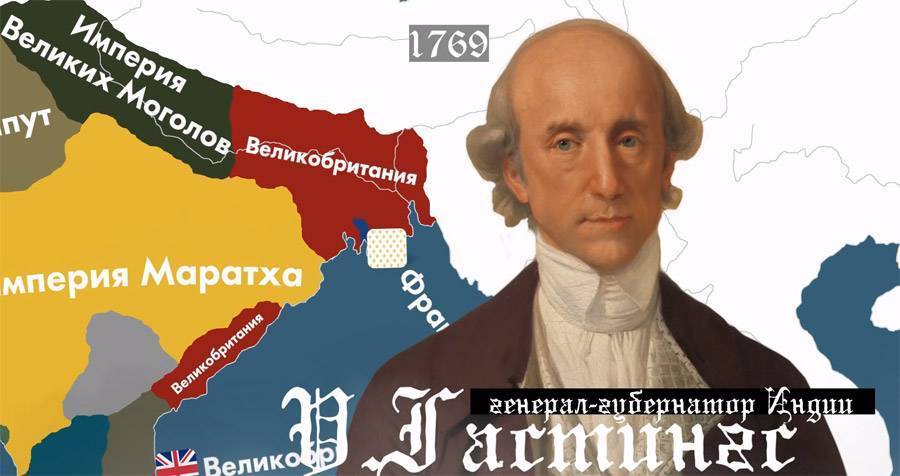 Вытеснив французов, англичане приступили к полному подчинению себе всей Индии. Много преуспел в этом Уоррен Хастингс (Гастингс), генерал-губернатор Индии в 1773— 1785 гг. В обмен на сохранение за местными правителями формальной власти и почёта он получил фактическое управление многими индийскими княжествами.
