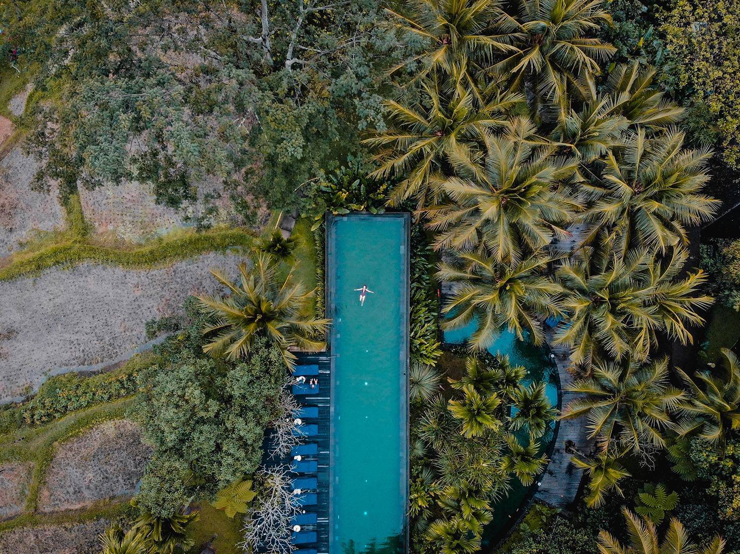 And if you wanted a bit more shade, you could take the steps down to the second pool where palm trees tower over you making the lounging area a bit cooler.
