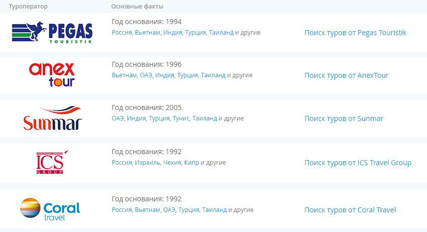 В список лучших туроператоров, работающих с Вьетнамом, традиционно входят крупные российские компании. Как правило, они занимают первые места и в топе надежности туроператоров России, подтверждая свои позиции данными из общего реестра.