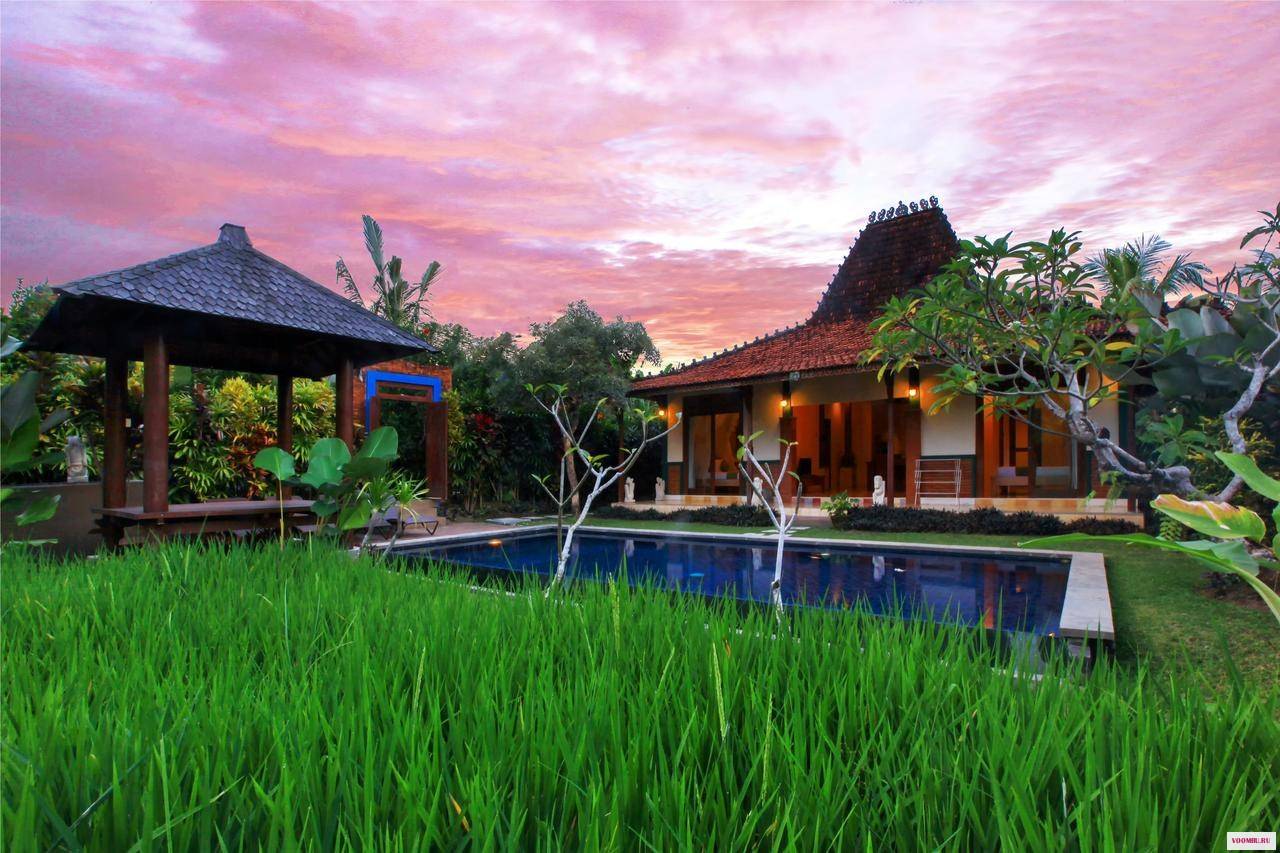 Владелица этого чудесного места женщина на вид 60 лет, родом из Австралии, очень интеллигентная и добродушная, ну а само место просто волшебное! 4 мини виллы, включая хозяйский дом, окружены зеленью рисового поля. Имеется бассейн. В каждой вилле, состоящей из одной просторной комнаты и душевой под открытым небом, есть своя библиотека, с любовью составленная хозяйкой Деви. С утра нас ожидал завтрак из свежих фруктов, купание в бассейне, и очень подробные советы от Деви, куда сходить и что посмотреть из достопримечательностей.