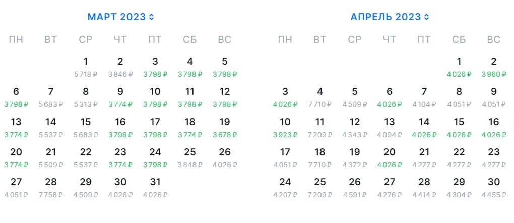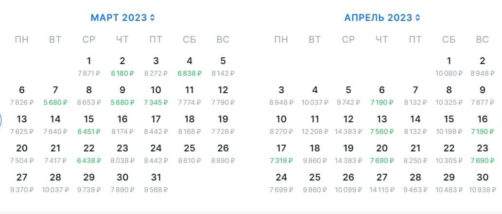 Посмотрите, какие варианты есть на ваши даты. Сайт мониторит предложения от 120 фирм. Есть удобная система для поиска и фильтрации предложений. Все цены окончательные. Перелет и проживание уже включены. Цены начинаются от 6 000 рублей с человека.