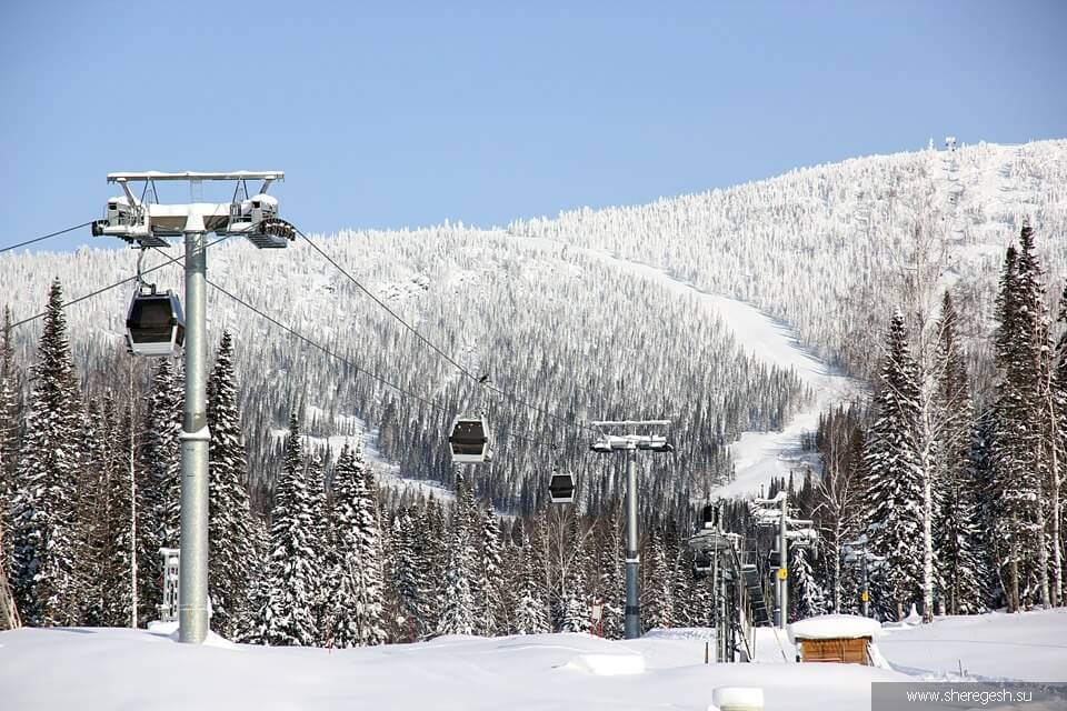Март считается «бархатным» сезоном. Основная гора для катания – Зелёная, 1270 м. Трассы для разной степени подготовленности, есть внетрассовые маршруты по лесу с гидами. На юго-западном склоне находится сектор Е, откуда начинается самый длинный спуск на 3.9 км – ровная трасса вдоль шерегешского леса, обрабатываемая ратраками. Любимое место фрирайдеров.