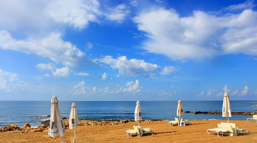 - местные достопримечательности равномерно распределены по всему острову, но главное на Кипре – пляжи и погода, 300 солнечных дней в году и сотни километров пляжей по периметру. (5 баллов)