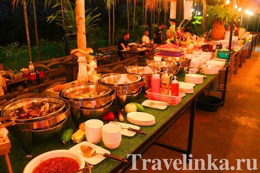 Безлимитные буфеты на Патонге — особое развлечение для туристов. Самое интересное в буфетах то, что еду надо готовить самому. Для этого прямо у вас на столе сооружают кастрюльку и гриль. Выбираете свежие морепродукты, мясо, овощи, приправляете соусами и вперёд! 🙂 Есть выбор готовых блюд, фруктов, десертов. Количество еды не ограничено. Единственное условие — если на тарелке осталась еда, за неё придётся заплатить штраф 100 бат за каждые 100 грамм.