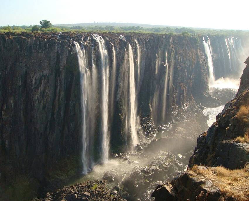 - Восточный порог. Это второе по высоте падение – 101 м. Восточный порог полностью находится на Замбийской стороне водопада Виктория.