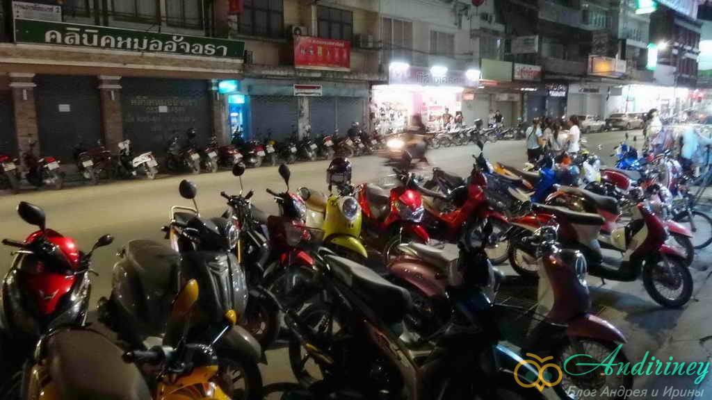 Поскольку Тай — страна, по меркам региона, зажиточная, местами там можно увидеть и мотоциклы. В целом, характерный мотопарк представлен ниже в фотографиях.