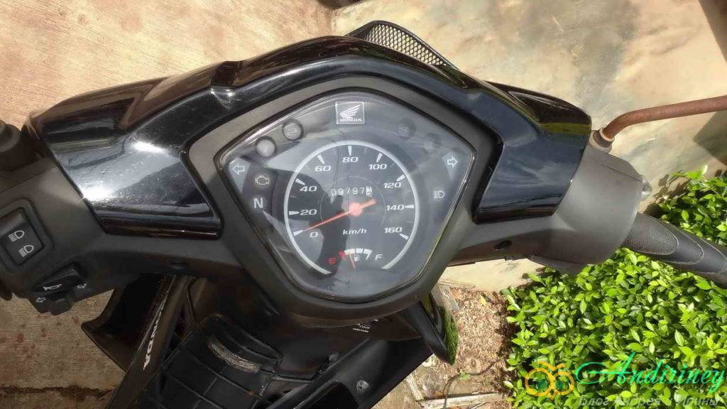 Когда мы купили свой первый мопед Хонда Клик и приехали на нем домой, сосед посмотрел на колеса и сказал, что нам крупно повезло, что мы смогли доехать до дома и заднее колесо не взорвалось по дороге, иначе была бы беда. Как оказалось, колеса действительно были в ужасном состоянии, на следующий же день мы их поменяли. Посмотрите, хорошо ли светит фара, ведь в темное время суток это будет очень для вас важно