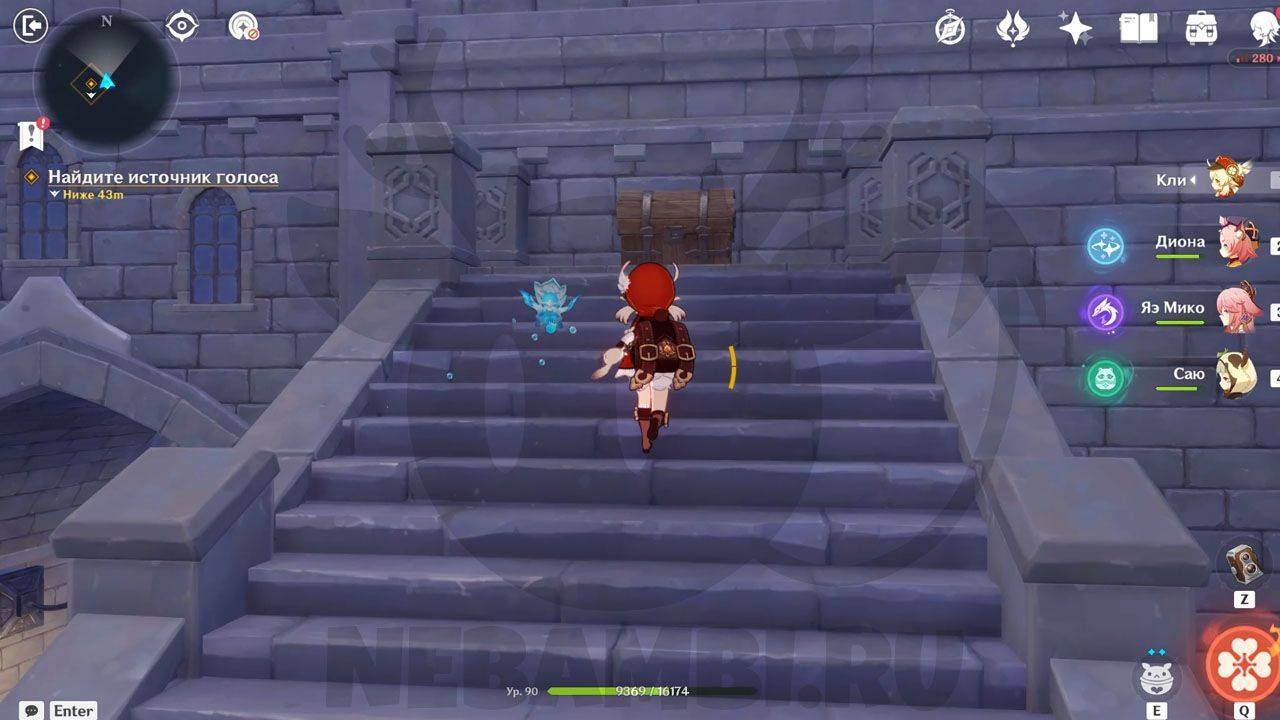 Снова поднимаемся наверх на лифте, а затем по другой лестнице к обычному сундуку.