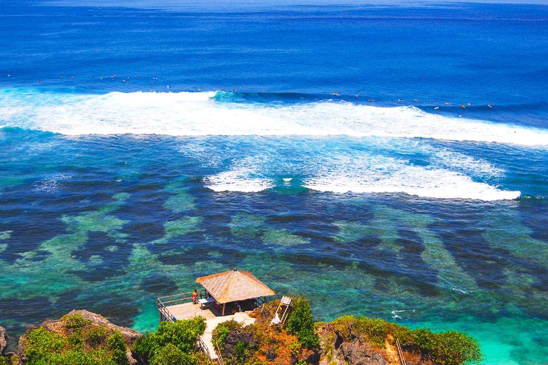 Улувату и пляж Паданг-Паданг в восточной части Букита. Выделяют два уровня спотов: для начинающих, с короткой правой волной, и для уверенных сёрферов с высоким уровнем катания, где волна закручивается в сложную левую «трубу» и сильное обратное течение.