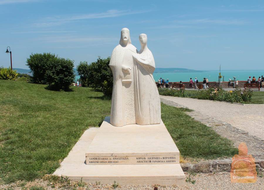 Рядом с храмом установлен необычный памятник королю Андрашу I и его жене Анастасии. Предположительно Анастасии была старшей дочерью киевского князя Ярослава Мудрого. Отмечу, что имя достаточно условно, так как оно не упоминается ни в русских летописях, ни в венгерских хрониках. В последних об Анастасии есть упоминание, как о «дочери князя Руси».