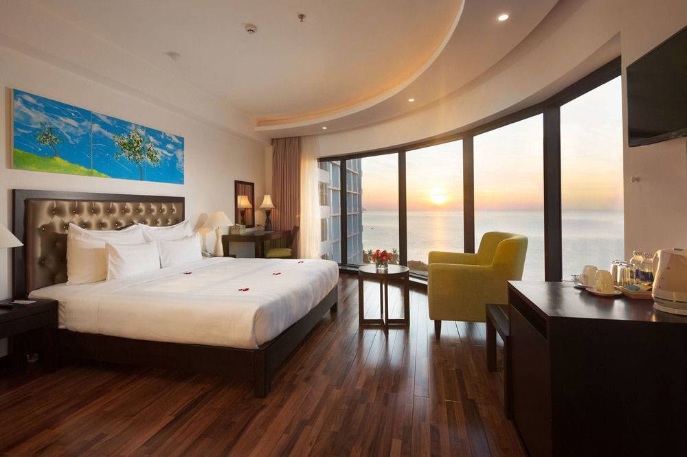 Отель открыт в 2016 году. Он находится в европейской части Нячанга, вокруг множество магазинов, массажных салонов, развлекательных заведений, ресторанов и кафе. Номера прекрасно оборудованы, предусмотрено все до мелочей. Из панорамных окон открывается незабываемый вид на море. Очень хорошо организовано питание: обильные завтраки накрываются в обоих ресторанах. Отелю принадлежит часть общего городского пляжа, расположенного через дорогу. Гостям особенно нравится, что прямо на пляже выдают полотенца – не надо носить их с собой. Из минусов отеля они отмечают два: один обычный для курортных мест – громкую музыку из бара на пляже, которая, несмотря на хорошую звукоизоляцию номеров, все же слышна часов до двух ночи. Второй минус, неожиданный для россиян, – шумные китайские туристы, которых здесь очень много. Впрочем, отель так удачно распланирован, что европейцы с ними почти не встречаются: даже рестораны китайской и интернациональной кухни находятся на разных этажах. О своих предпочтениях лучше сразу сказать при заселении.