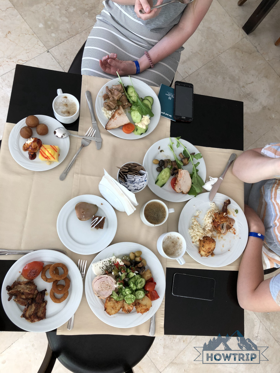 В этом случае отдыхающим не придется беспокоиться о том, где можно поесть, поскольку в отеле предусмотрено питание от 3 до 5 раз в день (шведский стол), а также напитки и местный алкоголь бесплатно. Однако в Причерноморье таких отелей встречается гораздо меньше, чем на популярных курортах, и чаще всего в стоимость проживания входит только завтрак.