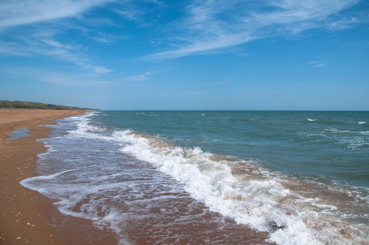 Песчаный пляж сменяется ракушечником, а его ширина в 60 метров позволяет комфортно разместиться отдыхающим. Чем дальше уезжать по косе от населенных пунктов, тем меньше становится людей. Даже в разгар сезона здесь не встретишь массового скопления отдыхающих.