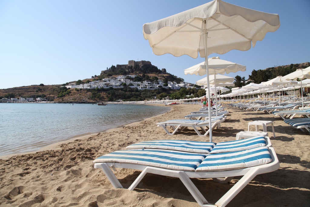 Большинство родосских купальных зон оборудовано шезлонгами и зонтиками. Цена двух лежаков и одного зонта — 7-10 евро в день. Обычно деньги начинают собирать в 10-11 утра. Вы можете приходить со своим инвентарем, лежать на полотенцах или прямо на золотистом песочке.
