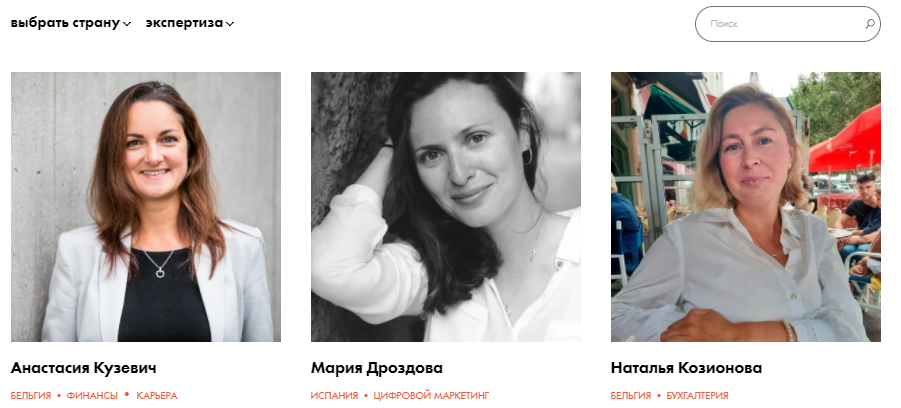 На платформе можно подобрать индивидуального ментора. Каждый специалист фокусируется на определенной тематике в конкретной стране. Например, он может рассказать про грамотное выстраивание коммуникаций, особенности медицинского обслуживания или научной карьеры и так далее.