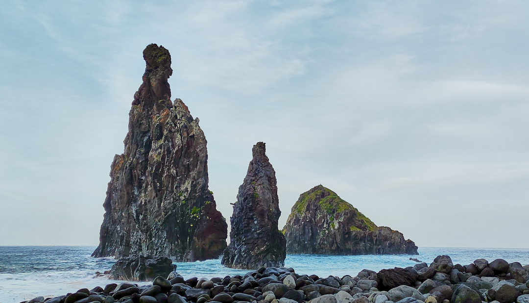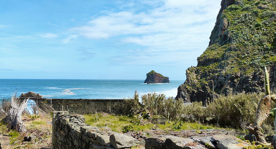 Смотровая Miradouro Ilheus da Ribeira da Janela находится не на вершине, как большинство других, а в небольшой бухточке у подножия горы — с нее открывается вид на три островка-скалы