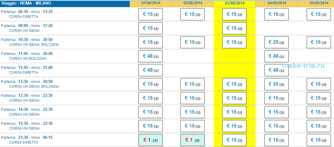 - Болонья – Милан – 15,90 евро.