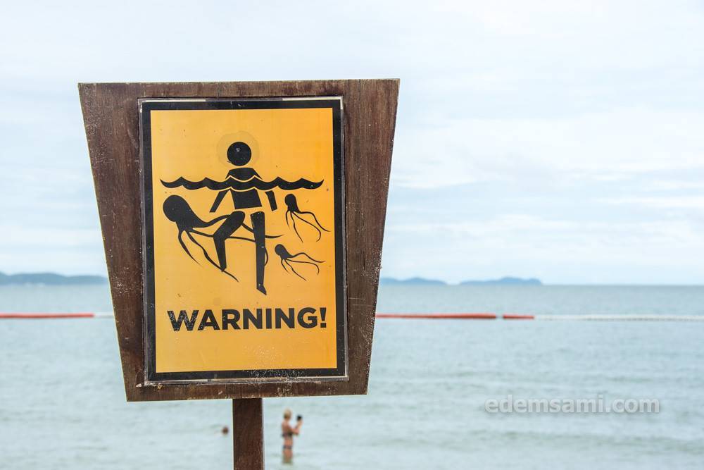 Обращайте внимание на предупреждающие знаки. Перед тем, как зайти в воду, внимательно посмотрите, нет ли там медуз